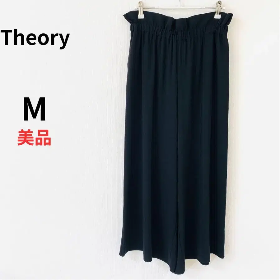 띠어리 파우더 크레이프 플루이드 풀온 와이드 팬츠 블랙 P
