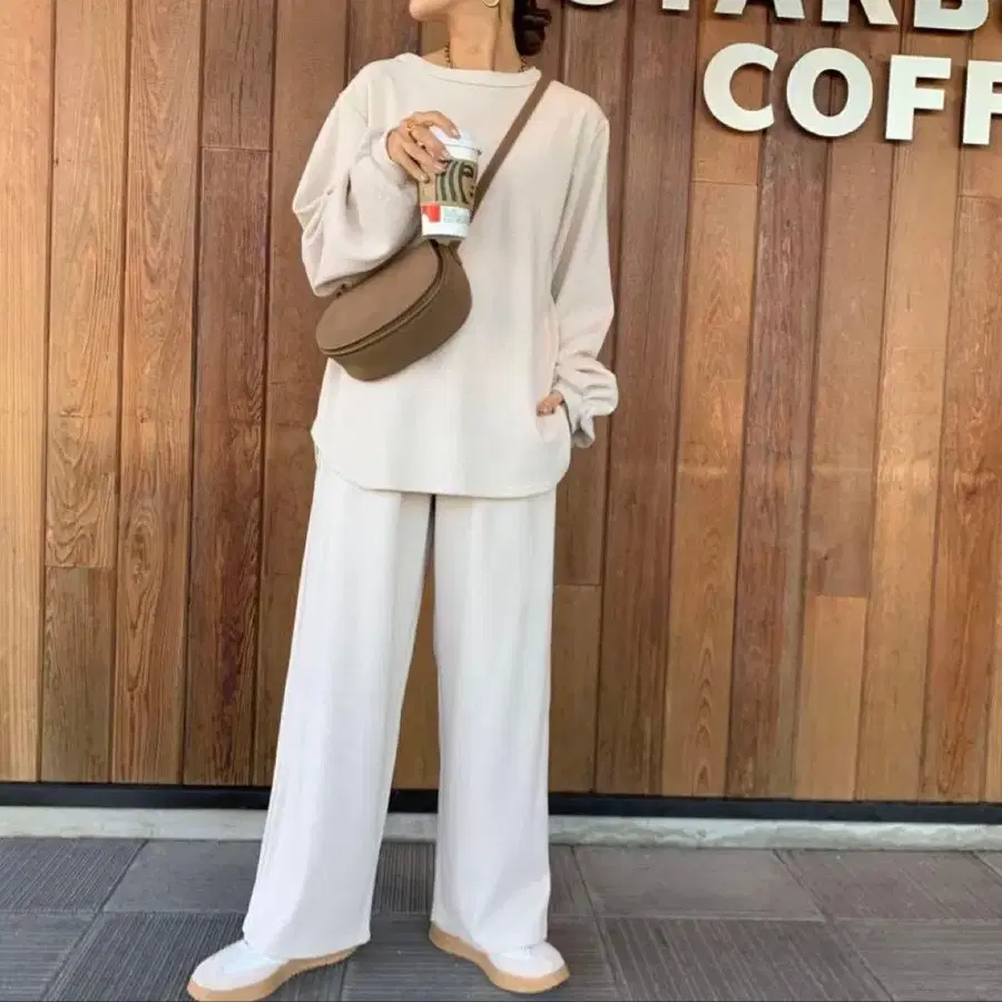 BLATE 고급 뉴앙스 기모 리브 와이드 팬츠