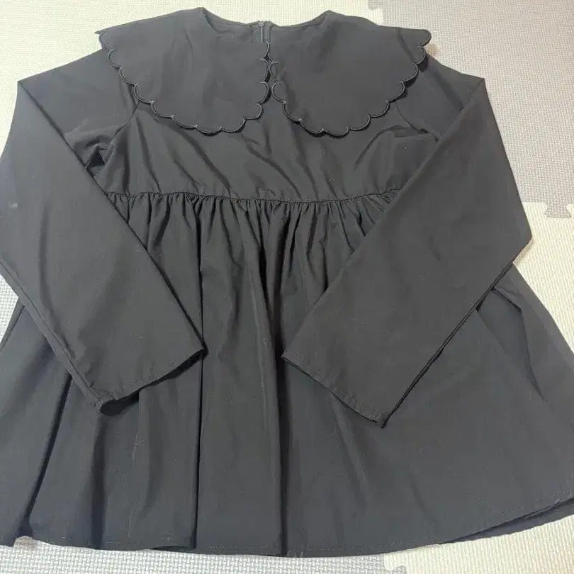 핏 모어 블랙 스캘럽 칼라 긴팔 블라우스