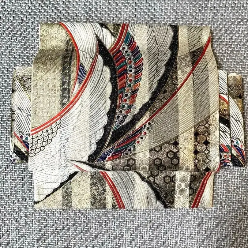 원터치 후쿠로 오비 벨크로 테이프 타입 깃털 무늬 기하학 패턴