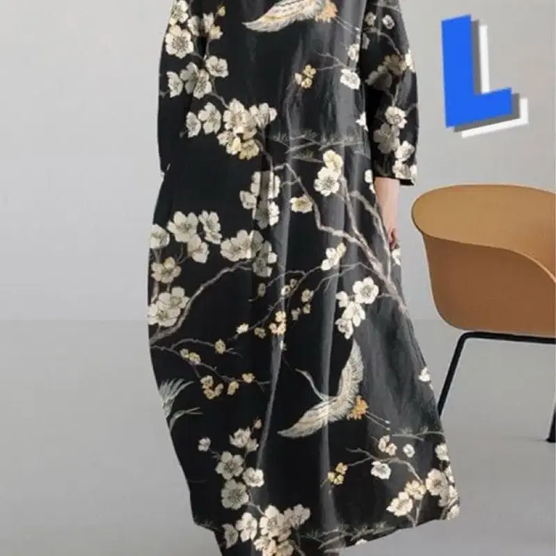 일본풍 패턴 학과 벚꽃 꽃 롱 원피스 블랙 베이스 L