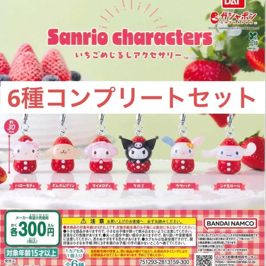 산리오 캐릭터 딸기 메지루시 액세서리 6개 세트