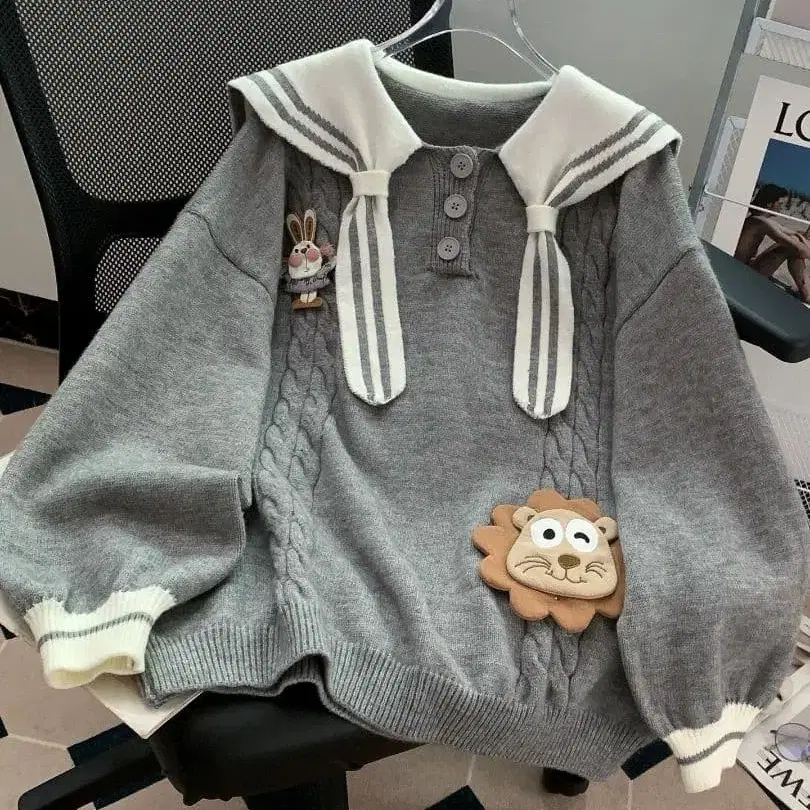 세일러 카라 그레이 긴팔 니트