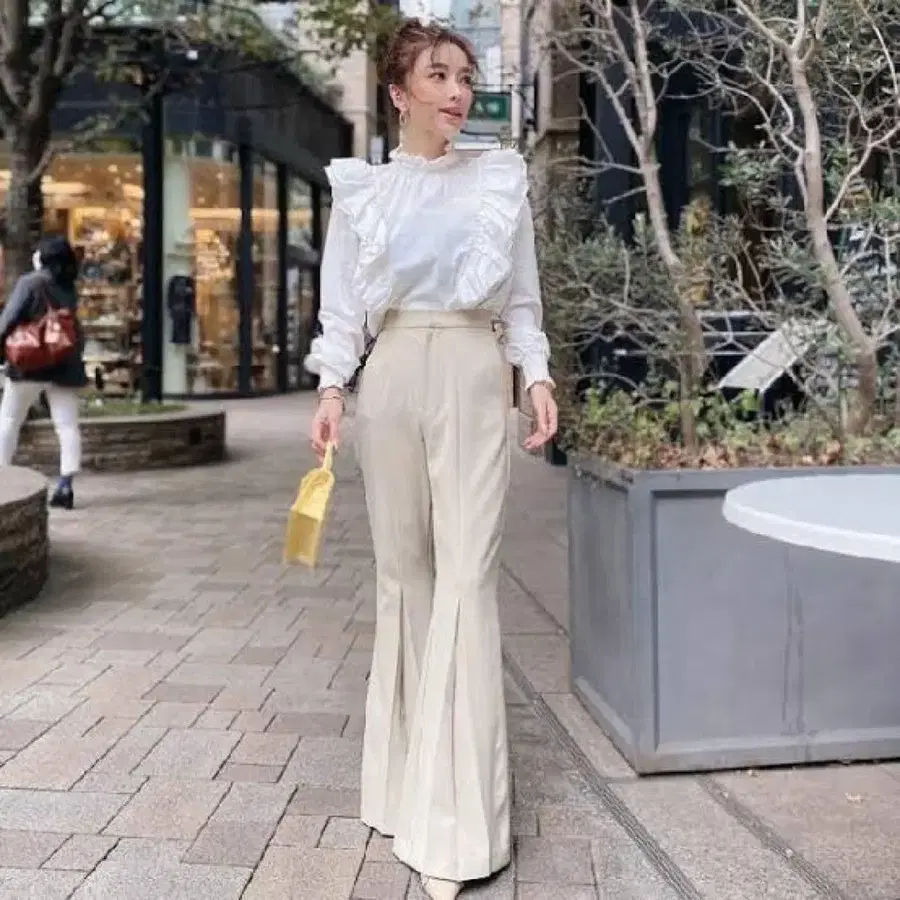 eimy istoire 에이미 이스트 월 센터 플리츠 플레어 팬츠