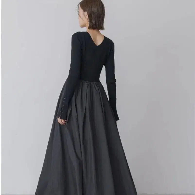 regleam 리그림 절개 리브 니트 롱 슬리브 원피스