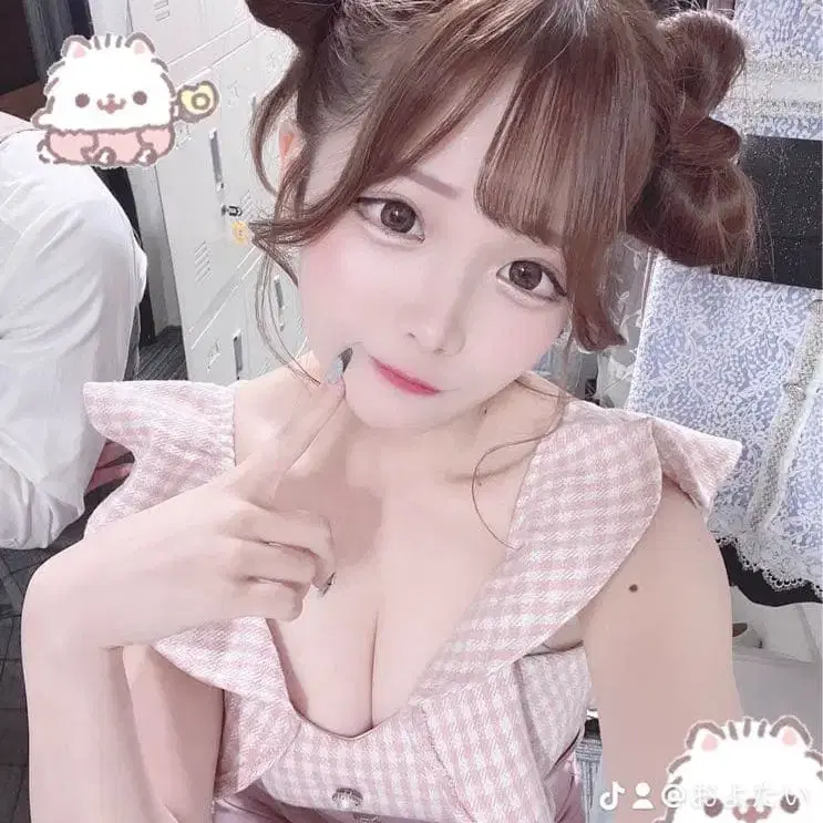 프릴 소매 깅엄 체크 핑크 타이트 미니 드레스