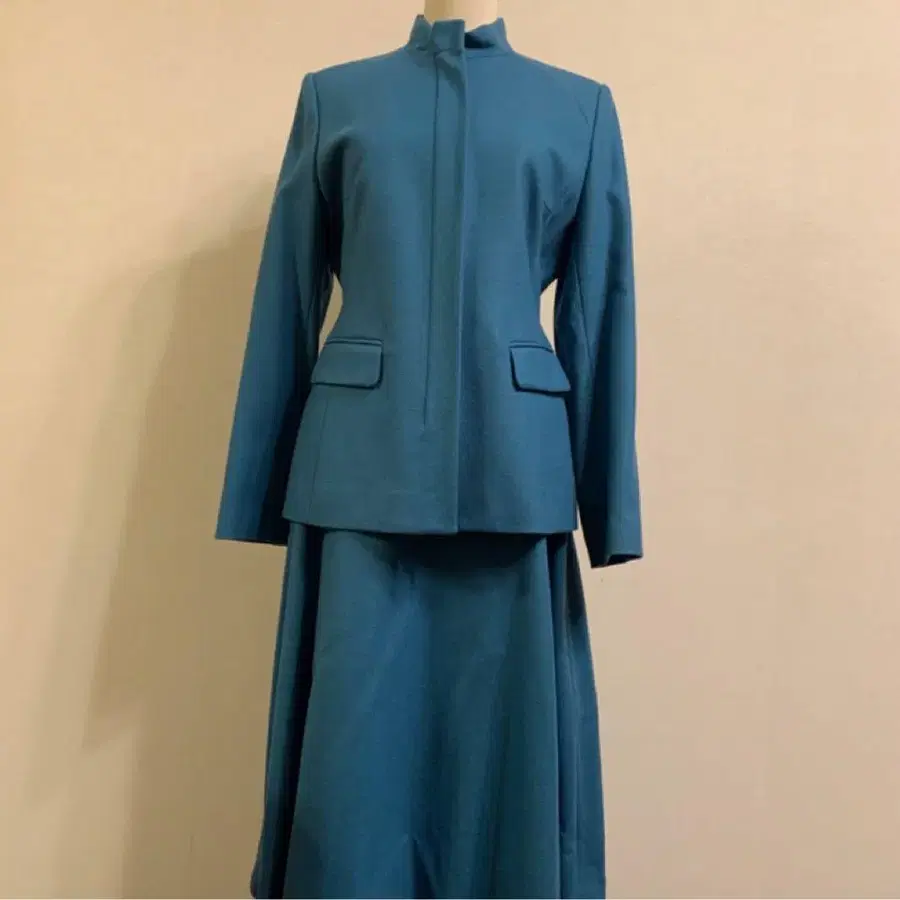 청록색 수트 자켓과 스커트 세트