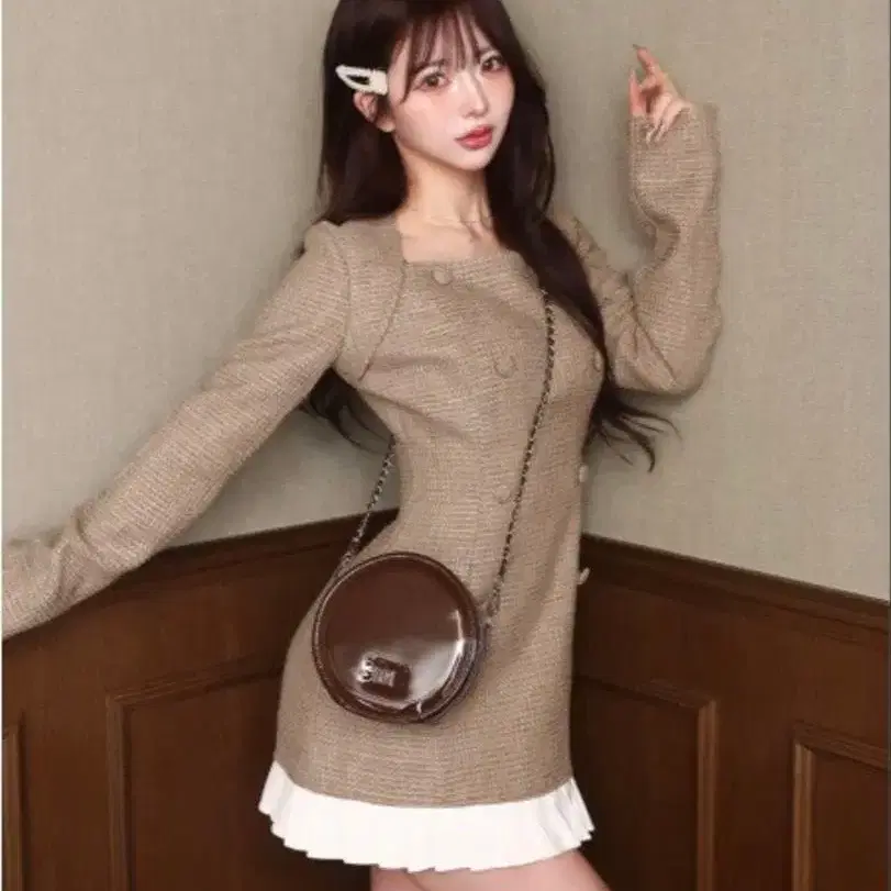 Darich 플리츠 도킹 트위드 미니 원피스