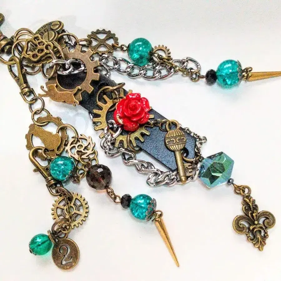 기어 백 참 장미 & 고양이 스팀펑크 고딕 스타일