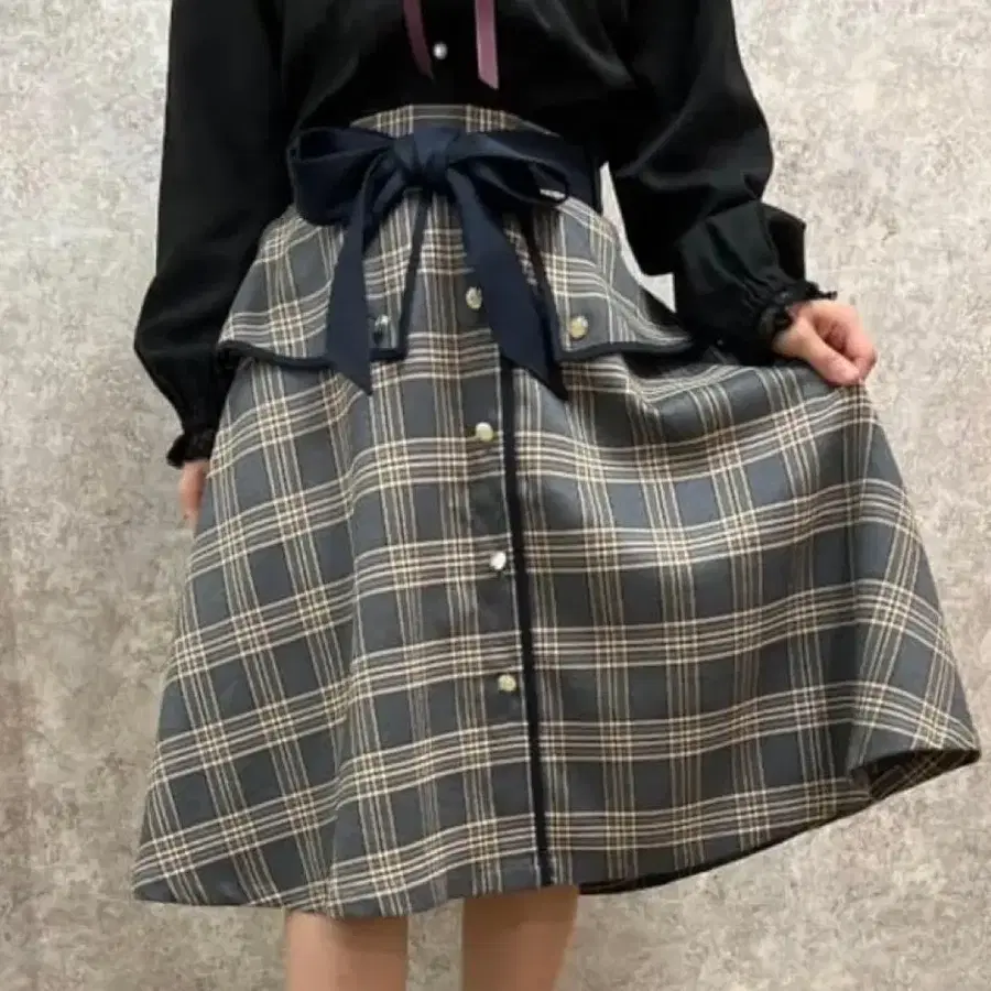 엑시즈팜 트렌치 디자인 체크 스커트 리본 벨트 포함