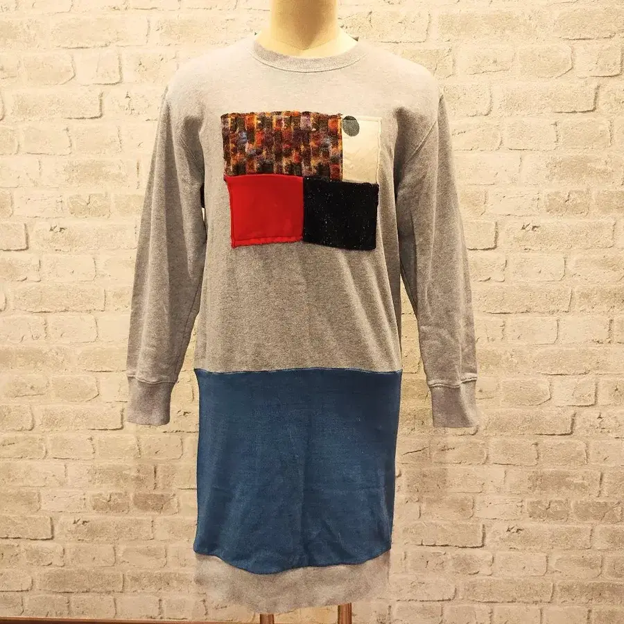MORI YUMI 패치워크 절개 디자인 긴팔 맨투맨 원피스