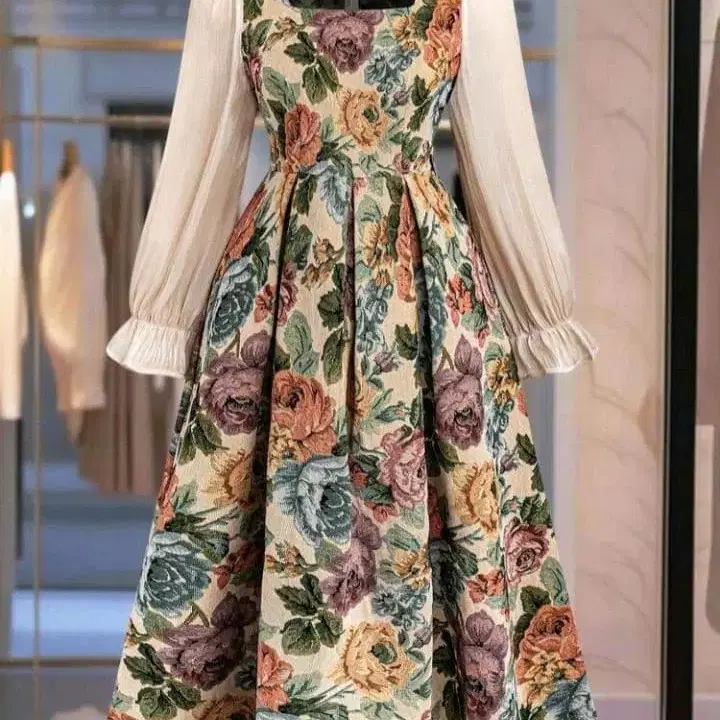 플라워 프린트 A라인 원피스