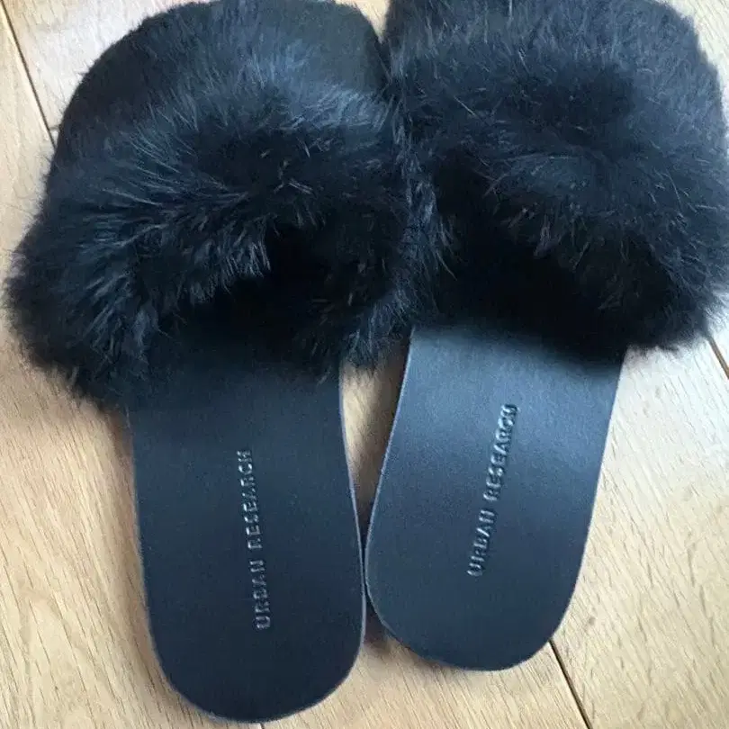 URBAN RESEARCH 블랙 퍼 슬라이드 샌들
