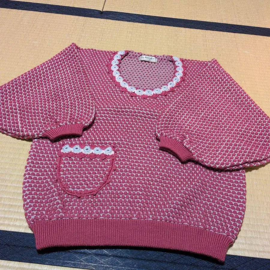 [ 더!! 쇼와 레트로 ] 핑크 니트 스웨터 포켓 부착