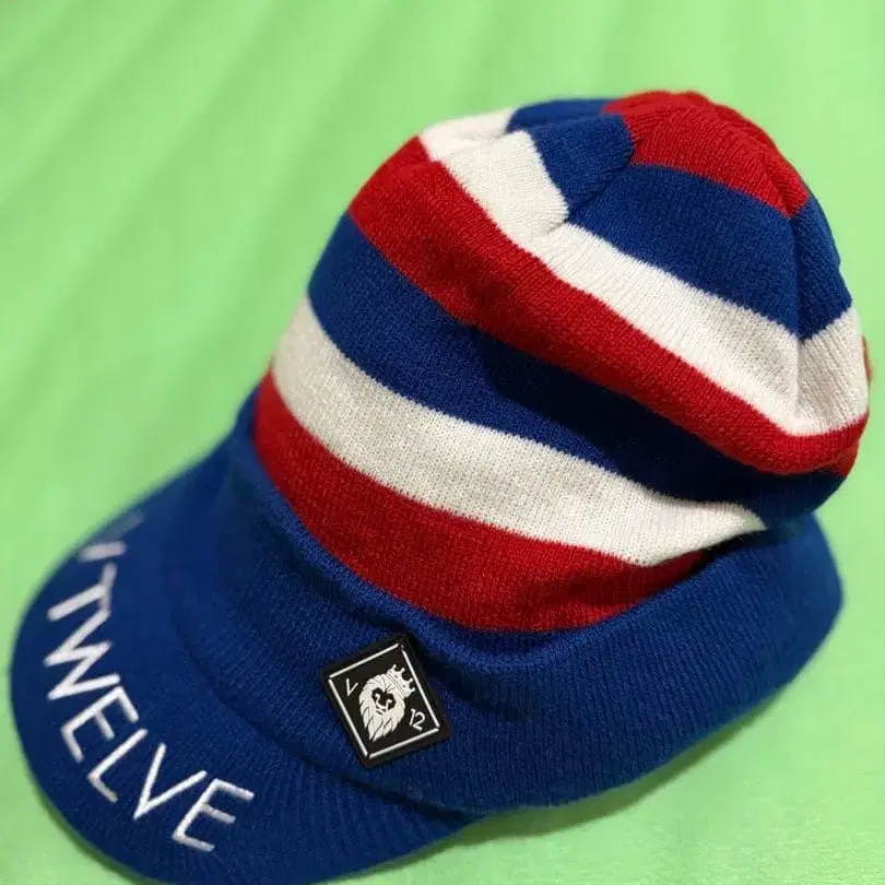 [ V12 ] 니트 모자 파랑빨흰 스트라이프