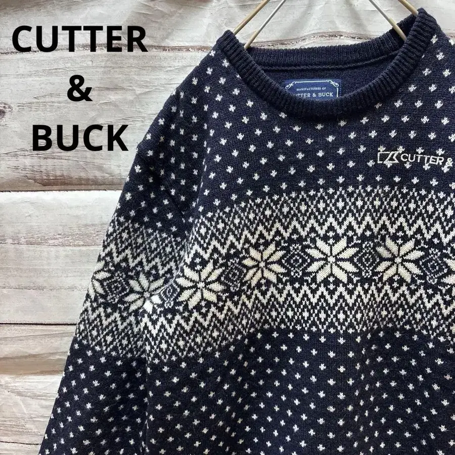 커터앤벅 노르딕 무늬 스웨터 로고 자수 골프 L