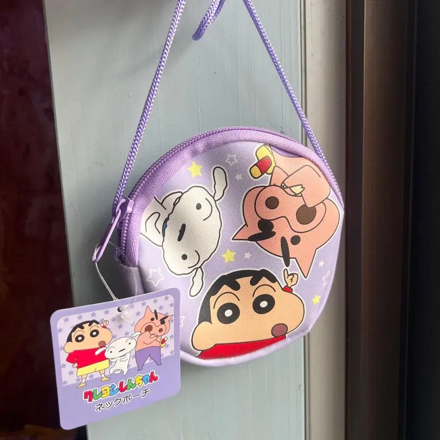 짱구는 못말려(크레용 신짱) 원형 파우치 보라색 목걸이 파우치
