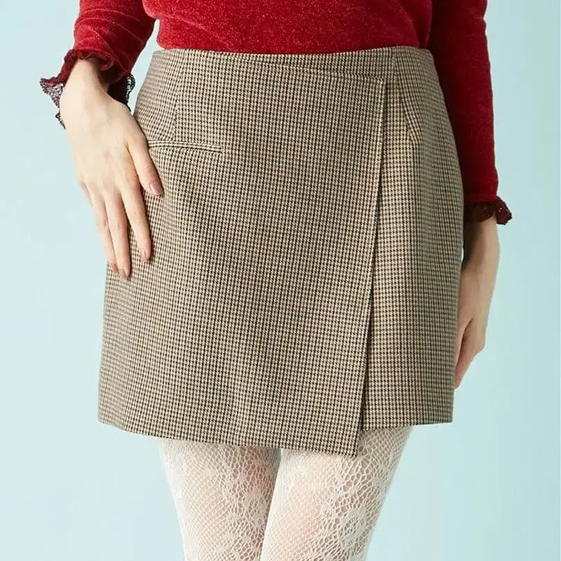 LILY BROWN 체크 무늬 타이트 스커트 전개 랩스커트