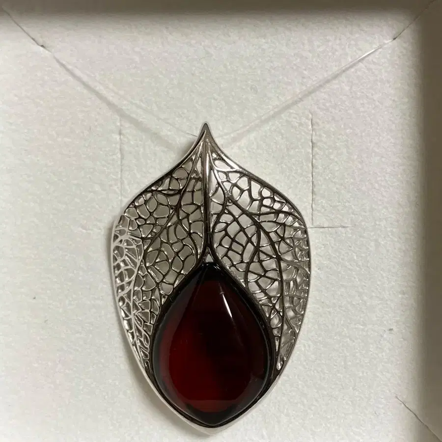 S&A 잎 모양 실버 펜던트 탑 빨간색 돌 포함