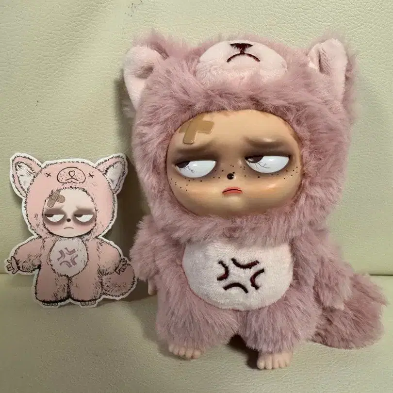 비닐 소재의 핑크색 봉제 인형, Sleepless Grumpipi. - 모델명: Sleepless Grumpipi - 소재: 비닐 - 색상: 핑크 - 부속품: 카드, 상자 방문해 주셔서 감사합니다.