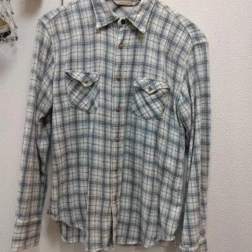 umii908 면 체크 긴팔 셔츠 일본제 45rpm