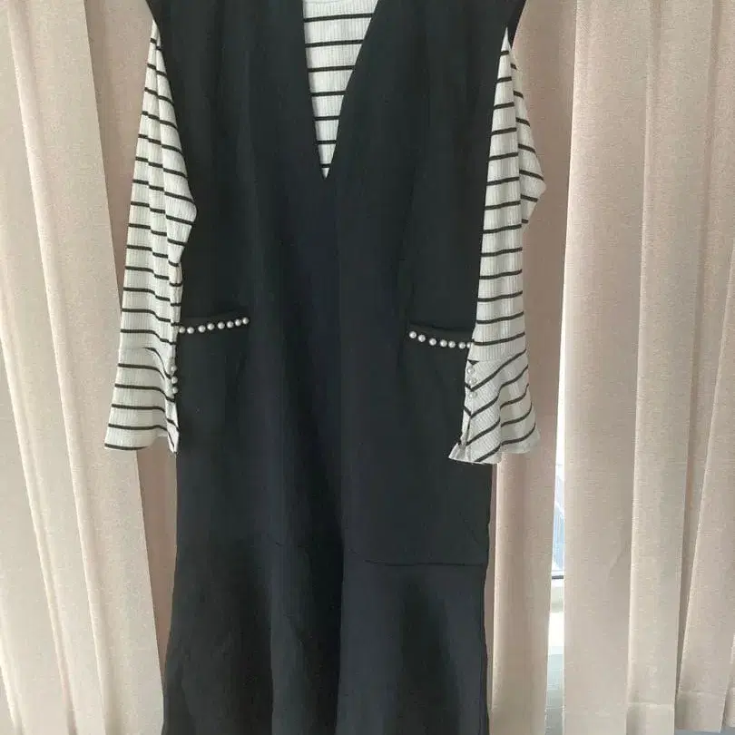 새상품 블랙 V넥 원피스와 보더 상의 세트