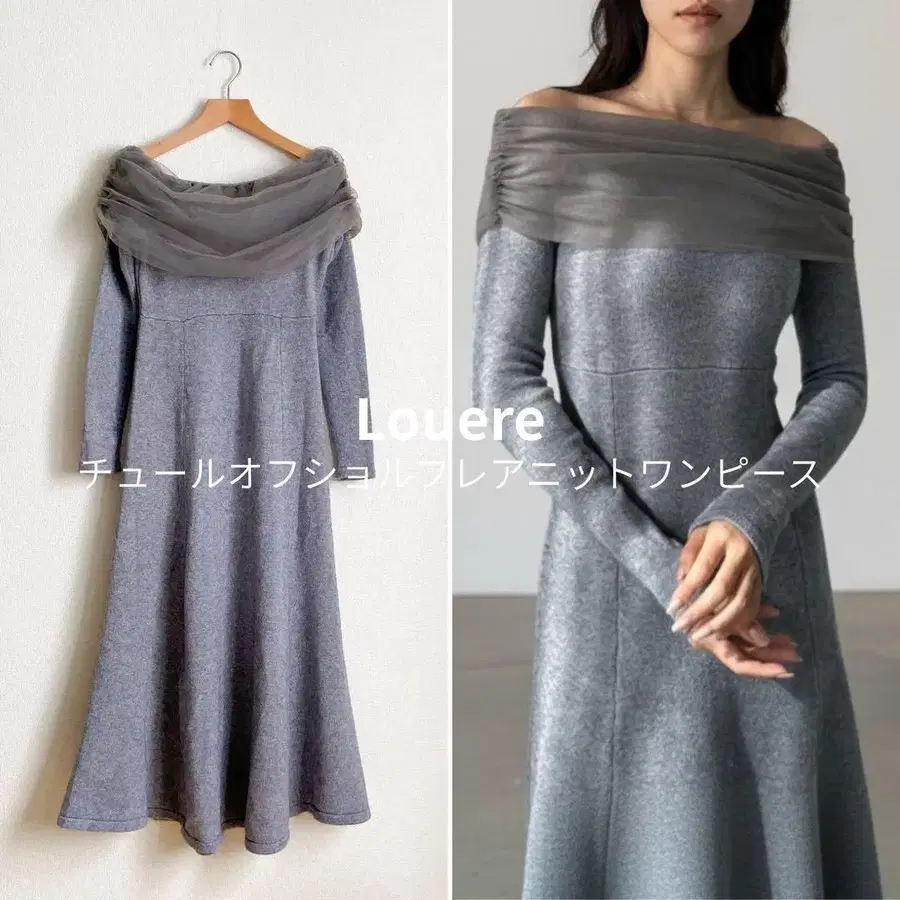 르엘레 튤 오프숄더 플레어 니트 원피스 그레이 미사용