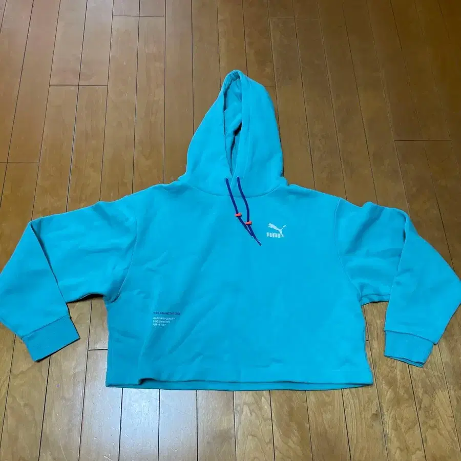 PUMA 스카이블루 크롭 후드티 터콰이즈 속기모