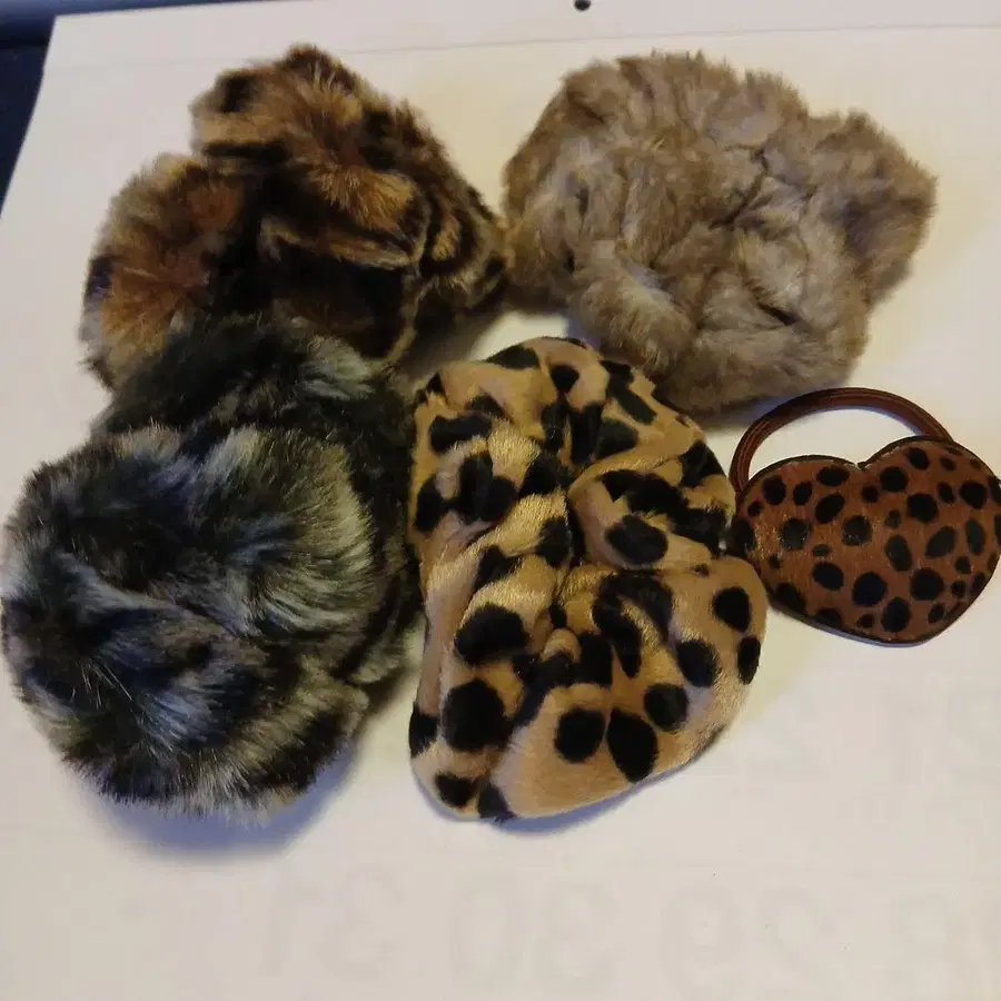 레오파드 무늬 페이크 퍼 스크런치 외 5개 세트