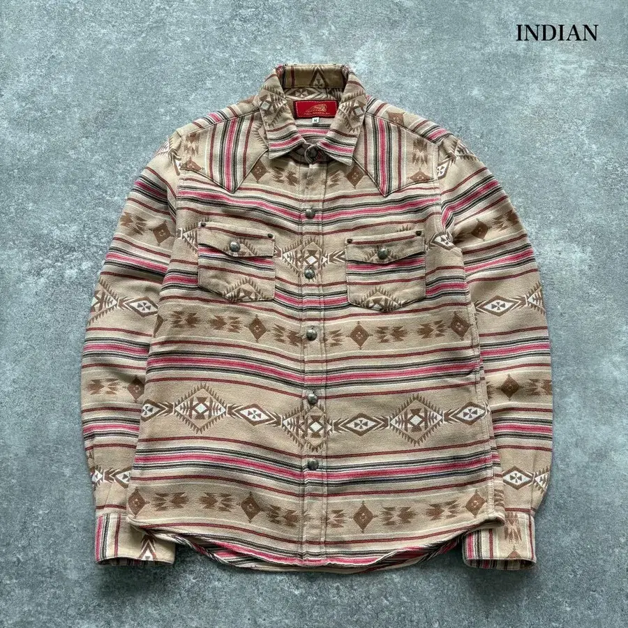 눈길을 끄는 것은 프론트에 배치된 콘초 버튼입니다. 단순한 장식이 아니라, 모터사이클 문화와 네이티브의 맥락이 자연스럽게 연결되어 있음을 느낄 수 있습니다. 양산형 웨스턴 셔츠와는 결정적으로 다른 부분입니다.