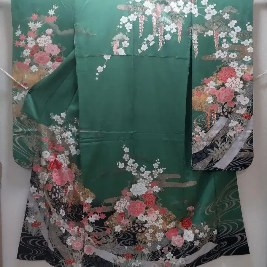 순수 실크 금채 유수화차 후리소데 (915)