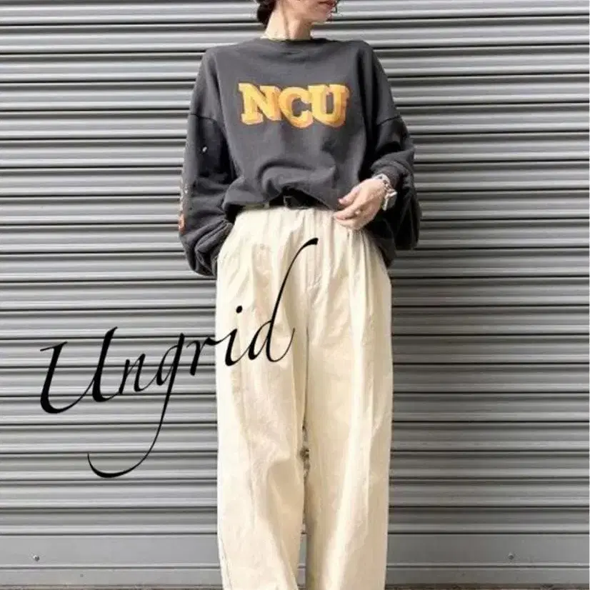 Ungrid 루즈 실루엣 로고 맨투맨 FREE 차콜 그레이