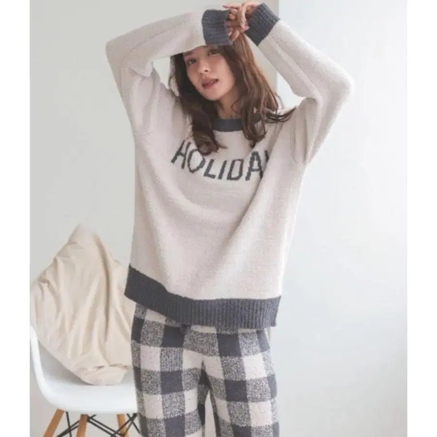 젤라또피케 파우더 로고 자카드 풀오버 & 롱 팬츠 세트