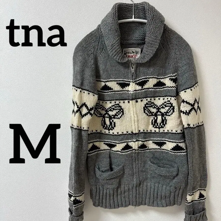 새상품급 [ M ] tna 그레이 아이보리 니트 스웨터 집업