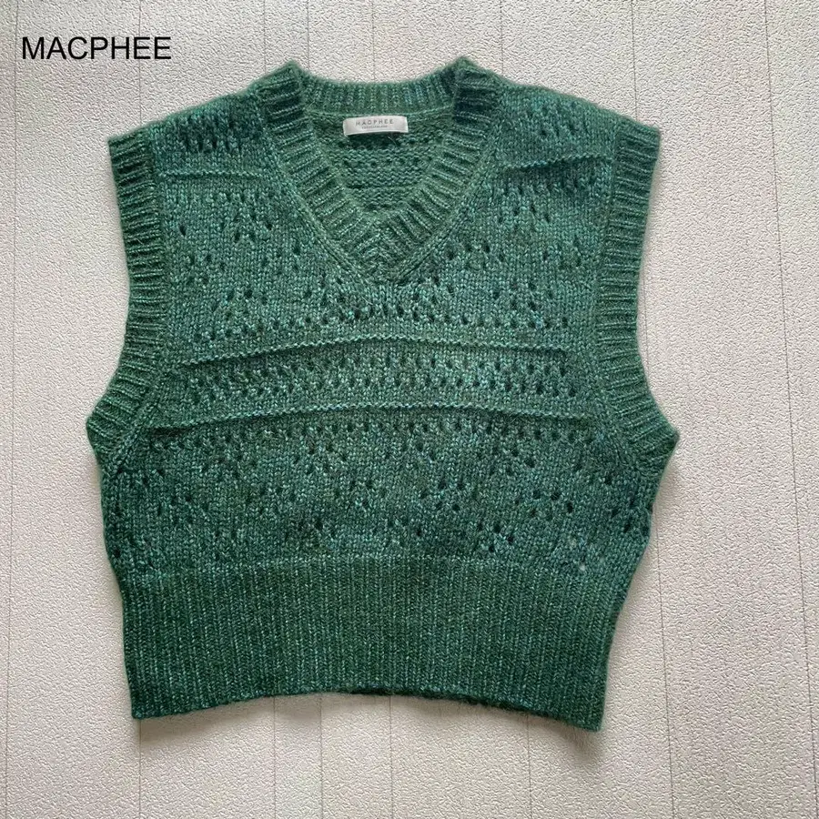 자동 번역되었어요. 원문보기MACPHEE 컬러 아이렛 V넥 베스트 그린 S