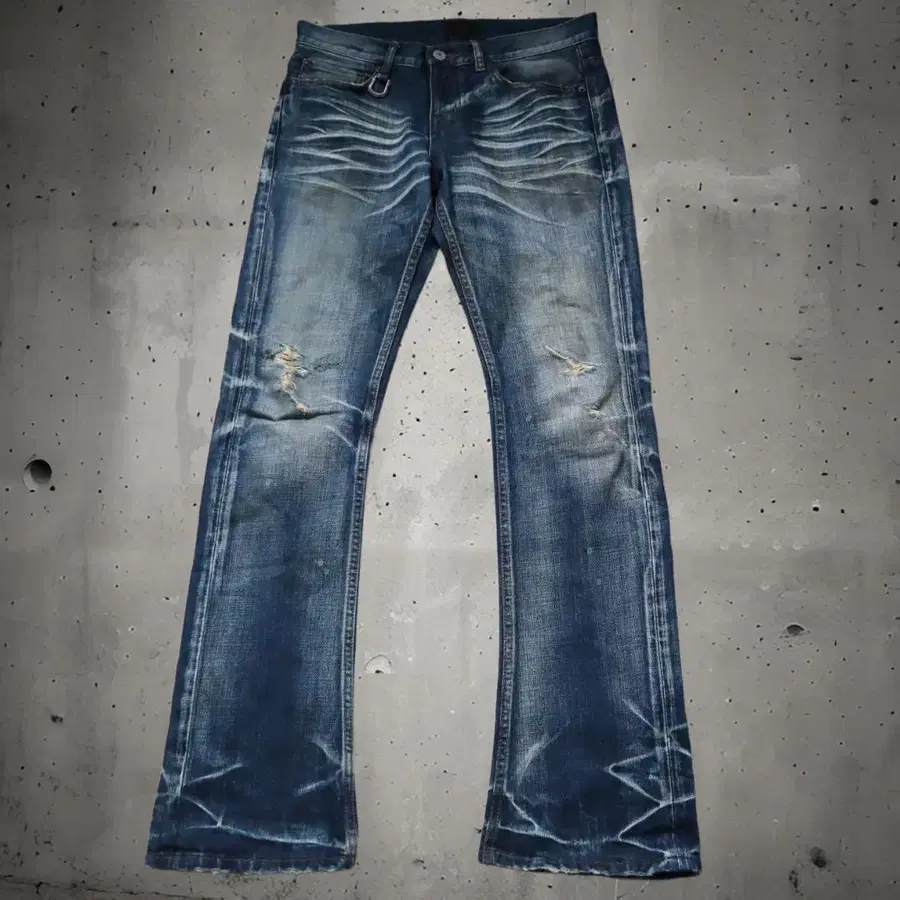 JACKROSE/잭로즈 데미지 가공 플레어 데님 팬츠 허니컴 귀수염