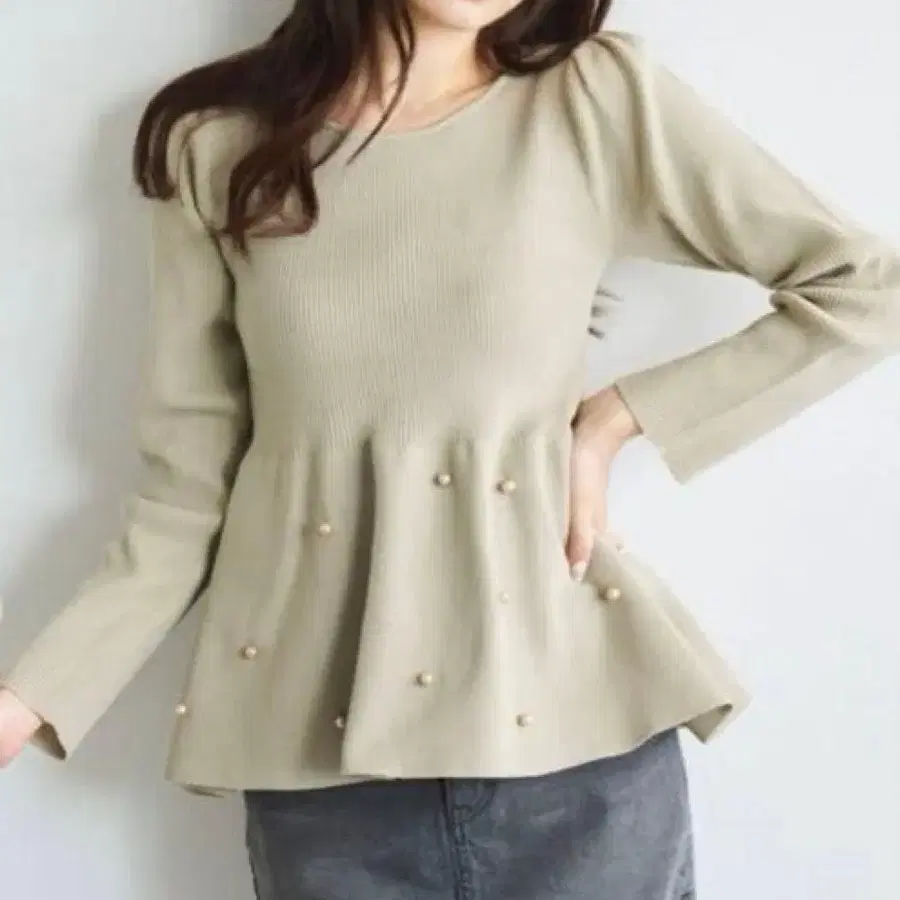 입체적인 볼륨감이 있는 페플럼이 시선을 사로잡는 니트 풀오버입니다. 가볍고 신축성이 있으며 까끌거리지 않는 것이 특징인 무연사 폴리에스테르에 비쥬를 더했습니다. 소매 부분은 실의 본뜨기를 변경하여 더운 시기에도 입기 쉽도록 했습니다. 허리부터 엉덩이까지 구조적인 다트를 눈에 띄게 넣어 볼륨감을 살린 페플럼 실루엣에 신경 썼습니다. 엉덩이를 가릴 정도의 약간 긴 기장으로, 다양한 실루엣의 팬츠나 타이트한 실루엣의 스커트와도 잘 어울립니다. 오프는 클리어 비쥬, 베이지, 블랙은 펄로 색상 전개에 따라 분위기가 달라지는 아이템으로 완성했습니다.