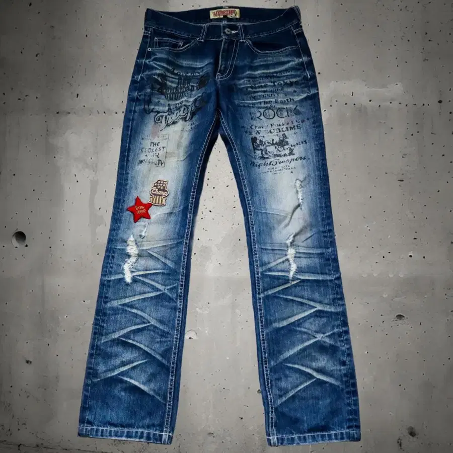 JACKROSE/잭로즈 데미지 가공 데님 팬츠 프린트 와펜