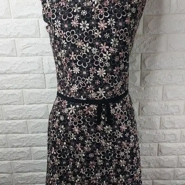 꽃무늬 슬리브리스 무릎 기장 원피스