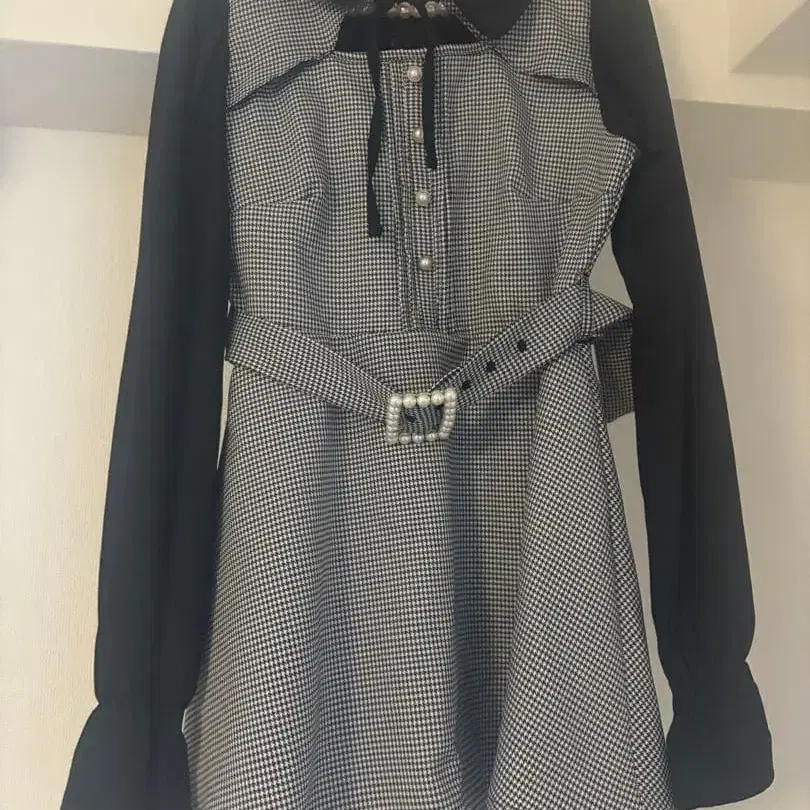 evelyn 초커 원피스 하운드투스 체크 패턴