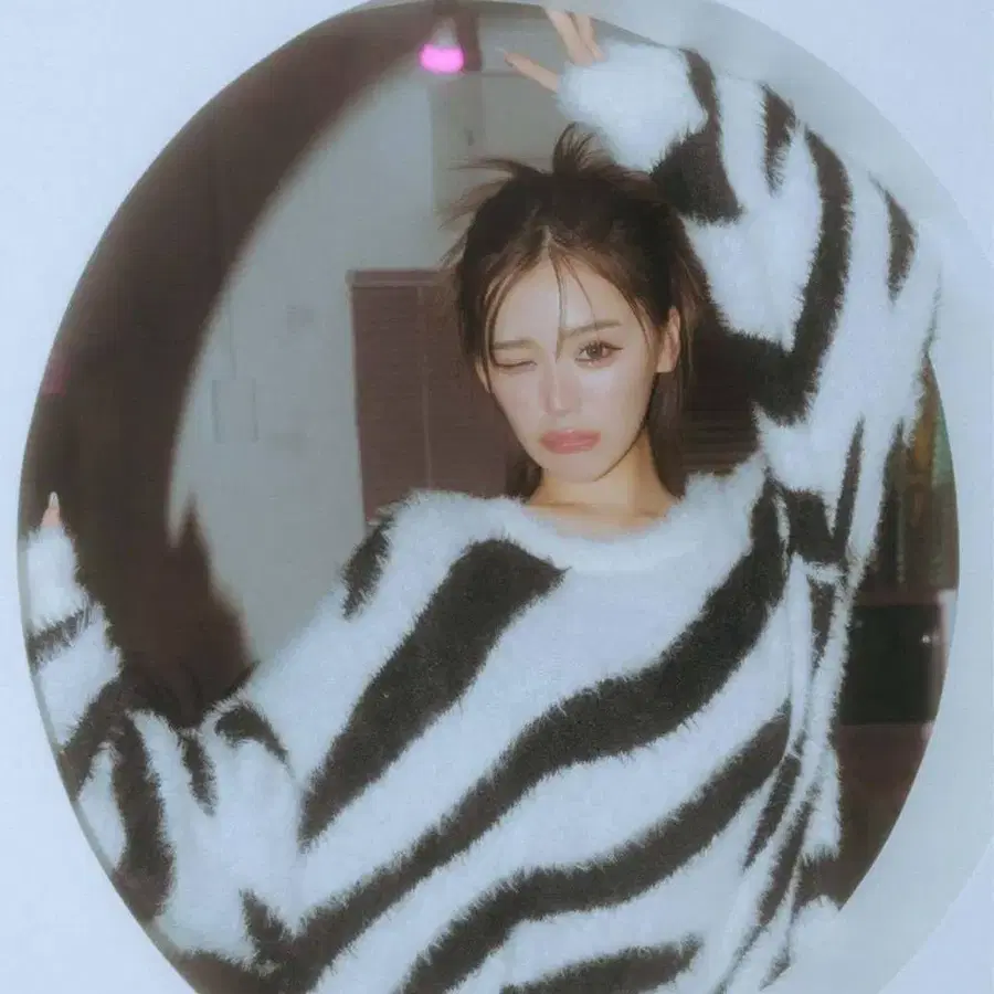 제브라 패턴 샤기 니트