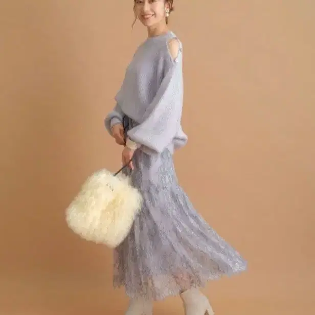 Apuweiser-riche 새상품급 레이스 스커트 레이어드 니트 업