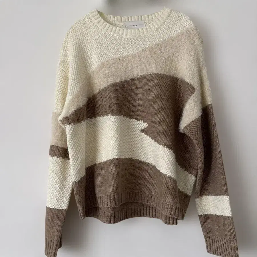 새상품급 YAMADAYA vin 아이보리와 브라운의 니트 스웨터