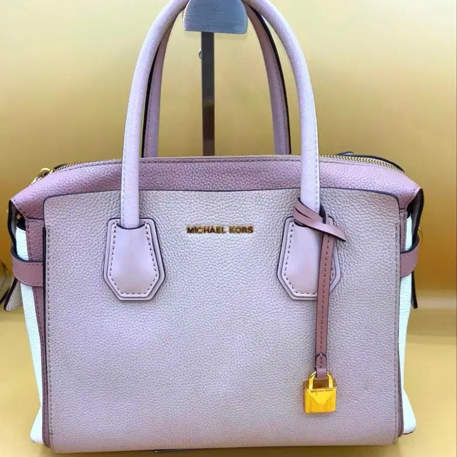 MICHAEL KORS 핸드백입니다. 고급스러운 더스티 핑크~그레이지 계열의 바이컬러 디자인으로, 출퇴근이나 외출 등 다양하게 활용하실 수 있습니다. 전체적으로 깨끗한 인상이지만, 바닥면이나 모서리 근처에 경미한 스크래치나 얼룩, 금장 장식 부분에 약간의 사용감 이 보여 상태는 [ 약간의 흠집이나 얼룩 있음 ]으로 표기했습니다. 크게 눈에 띄는 데미지는 없으며, 여전히 문제없이 사용 가능합니다. 열쇠가 달린 참이 악센트가 된, 고급스럽고 우아한 디자인입니다. ⸻ [ 상품 상세 정보 ] 브랜드: MICHAEL KORS ( 마이클코어스 ) 상태: 약간의 흠집이나 얼룩 있음 색상: 그레이지/더스티 핑크 계열 ( 바이컬러 ) 소재: 가죽 개폐: 지퍼식 부속품: 열쇠 참 ⸻ [ 사이즈 ( 약 ) ] 이미지를 참고해 주세요. ⸻ [ 주의 사항 ] 중고품, 자택 보관품에 이해가 있는 분만 구매 부탁드립니다. 상태는 사진으로 확인해 주세요. 즉시 구매 OK입니다.