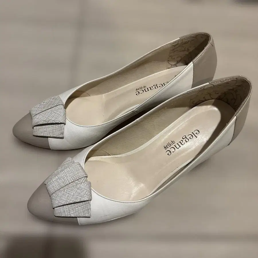 히미코 리본 포함 화이트 베이지 하이힐 펌프스