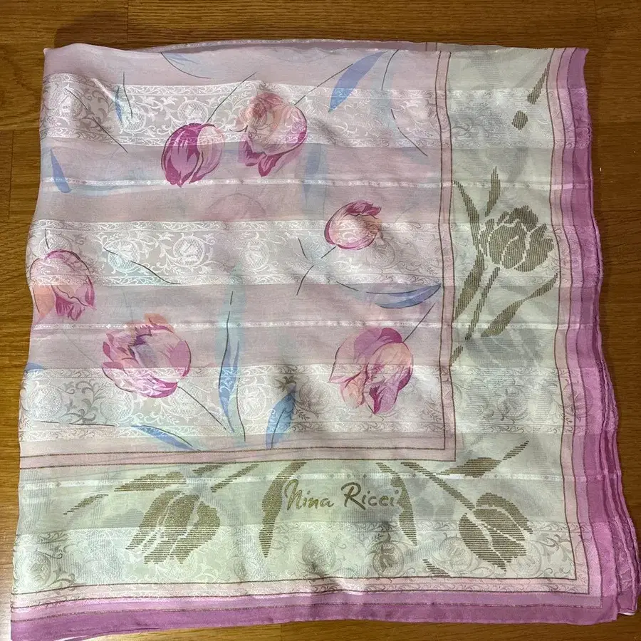 미사용 새상품 Nina Ricci 실크 스카프 튤립 패턴