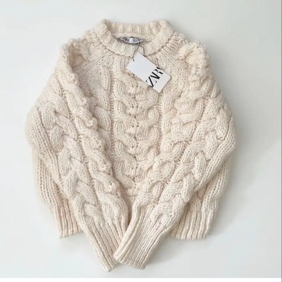 ZARA 케이블 화이트 니트