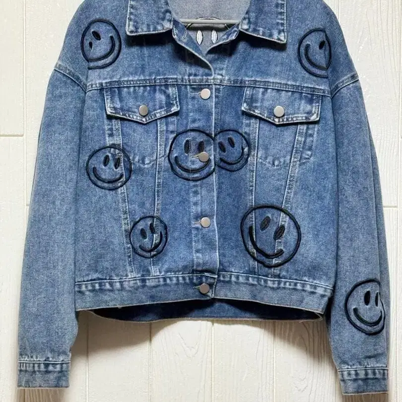 [ 미사용 새상품 ] 스마일리 페이스 자수 데님 자켓
