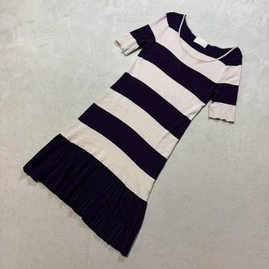 UNTITLED 스트라이프 니트 원피스 반팔 베이지 퍼플 M