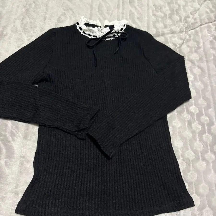 [ MILK ] 레이스 부착 리브 니트 티셔츠 [ 일본제 ]